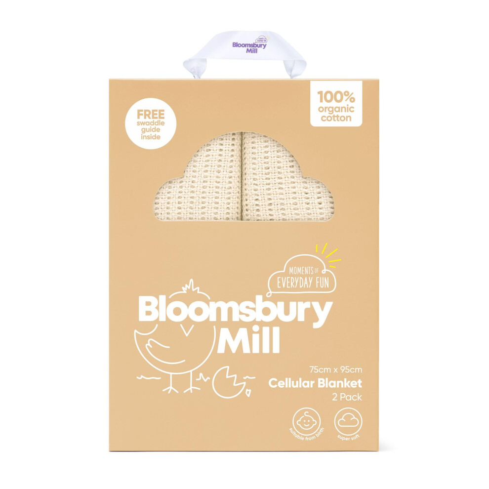 Bloomsbury Mill - Cellular Blankets Baby - Soft 100% Organic Cotton Blanket - Pack of 2 - Essentials For Newborn - Ideal for Cot Bed, Travel, Car