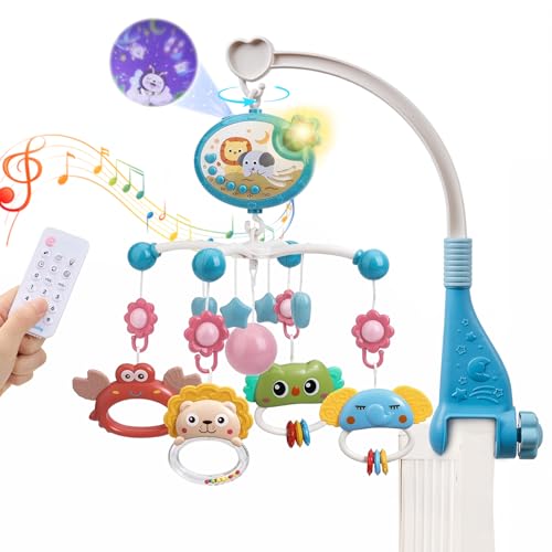 Warmiehomy Baby Crib Mobile Hanging Rattle Toys Cot Mobiles for Babies 0-12 Months Baby Bell with Star Projection Timing Remote Control Musical Mobile with Lights Sleep Aid Gifts for Newborn