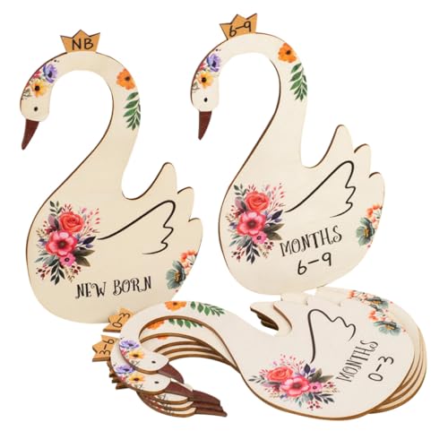 Homoyoyo 7pcs Baby Clothes Dividers for Wardrobe Organizer, Wooden Double-sided Cartoon Swan Size Separators, Newborn to Toddler Closet Hangers, Nursery Storage Solution