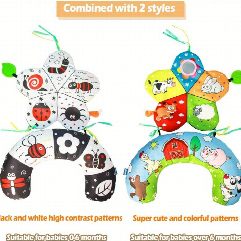 URMYWO Tummy Time Toys Black and White Baby Sensory Toys with Mirror, Newborn Essentials, Baby Toy Gift for 3+ Months Ideal for Playmat, Crib, Travel