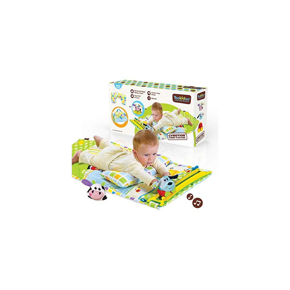 Baby Tummy Time Mat by Yookidoo. Newborn Musical Playmat & Outdoor Gym. Pillow, Teething Toys and Portable Fold-Up Case. 0- 12 months.
