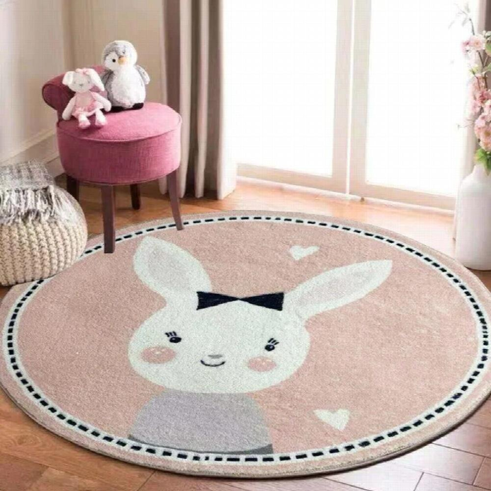 (Pink rabbit White-80x80cm) INS Nordic Cartoons Mat for Children Baby Play Mats Round Carpet Lion Playmat Newborn Photography Props Living Room Carpet