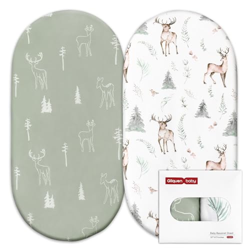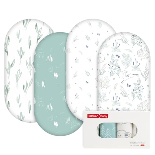 GLLQUEN BABY 4Pack Moses Basket Fitted Sheets, Newborn Pram Sheets Fitted, 100% Microfiber Oeko-tex100 Cozy and Breathable Crib Baby Bassinet Sheets for Boy and Girl(Forest Deer)