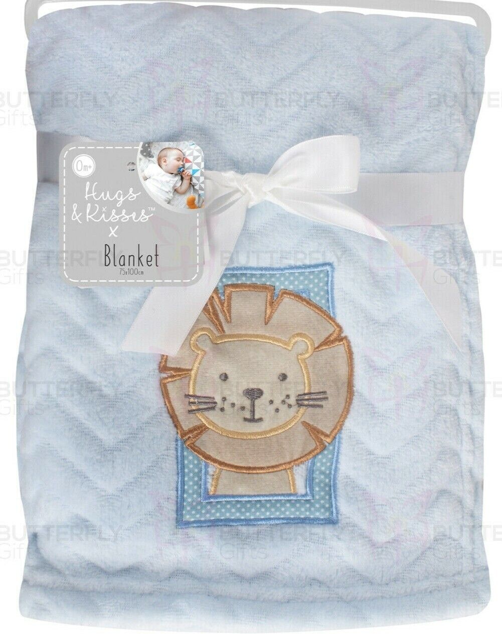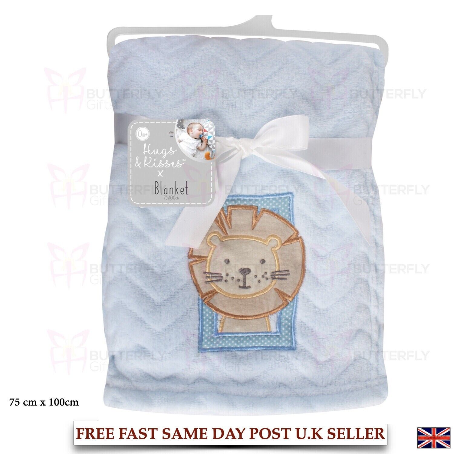 Baby Boy Blanket Soft Fleece Cute Lion Embroidered Newborn Pram Moses Cot Car