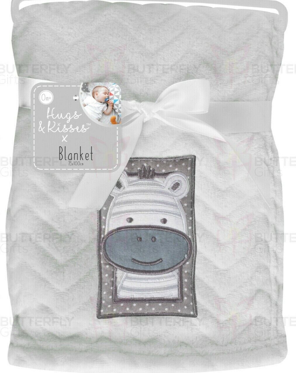 Baby Blanket Soft Fleece Cute Zebra Embroidered Newborn Pram Moses Cot Unisex