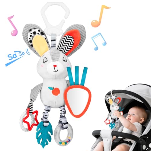Baby Toys 0-6 Months,Newborn Essential Hanging Pram Toys for Babies 0-6 Months Infant Sensory Pushchair Car seat Toys for Baby Girls and Boys Gift (Bunny)
