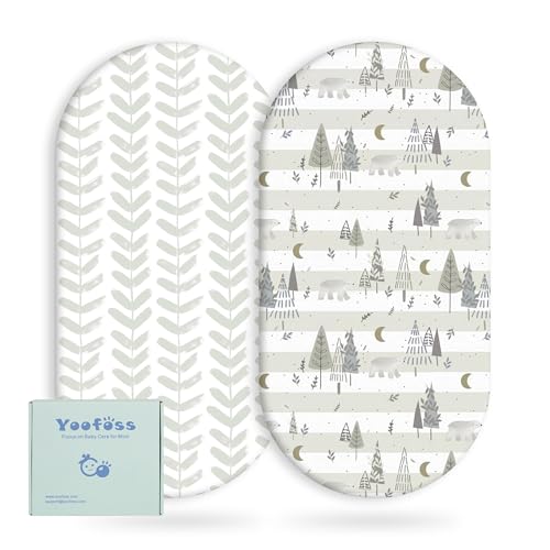 Yoofoss Moses Basket Sheets, Newborn Pram Sheet Fitted for Baby Boy and Girl, Crib Baby Bassinet Sheet, Breathable 2 Pack Easy Care