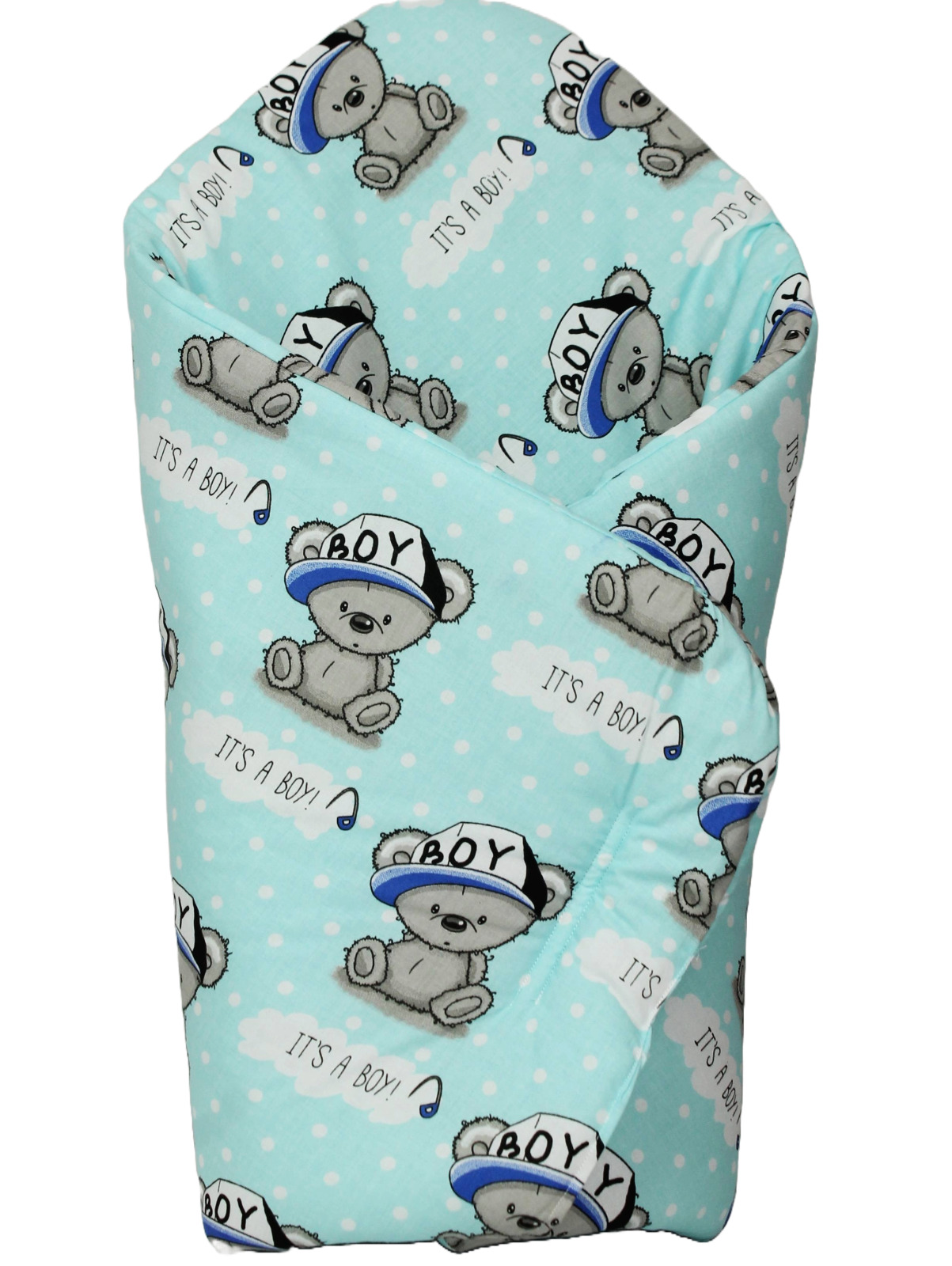 BABY SWADDLE WRAP SNUGGLE NEWBORN BLANKET PRAM QUILT SLEEPING BAG boy bears blue