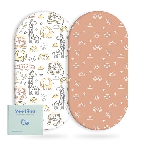 Yoofoss Moses Basket Sheets, Newborn Pram Sheets Fitted for Baby Boy and Girl, Crib Baby Bassinet Sheet, Breathable 2 Pack Easy Care