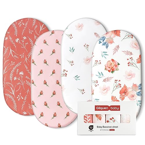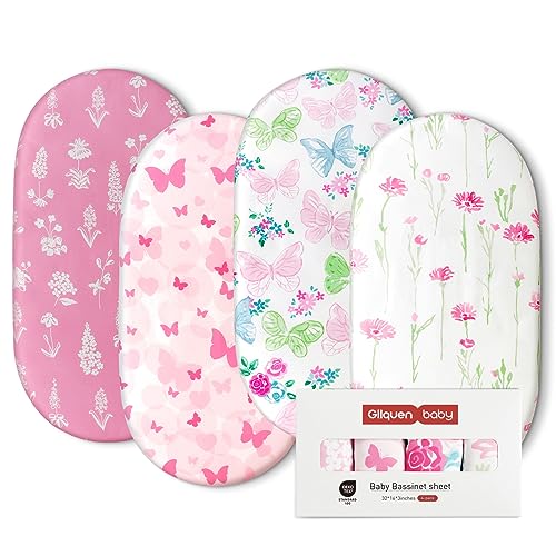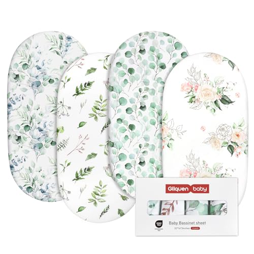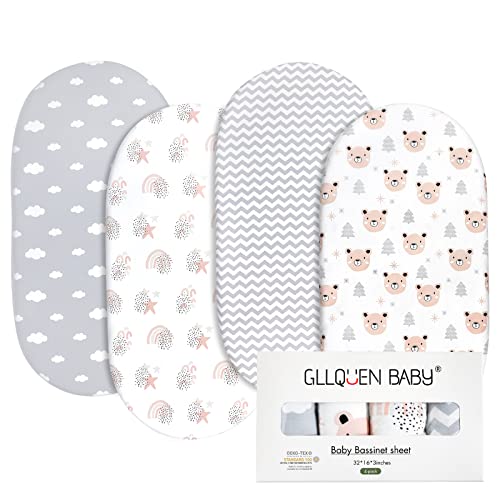 GLLQUEN BABY 4Pack Moses Basket Fitted Sheets, Newborn Pram Sheets Fitted, 100% Microfiber Oeko-tex100 Cozy and Breathable Crib Baby Bassinet Sheets for Boy and Girl, Easy Care Soft Fitted Sheet