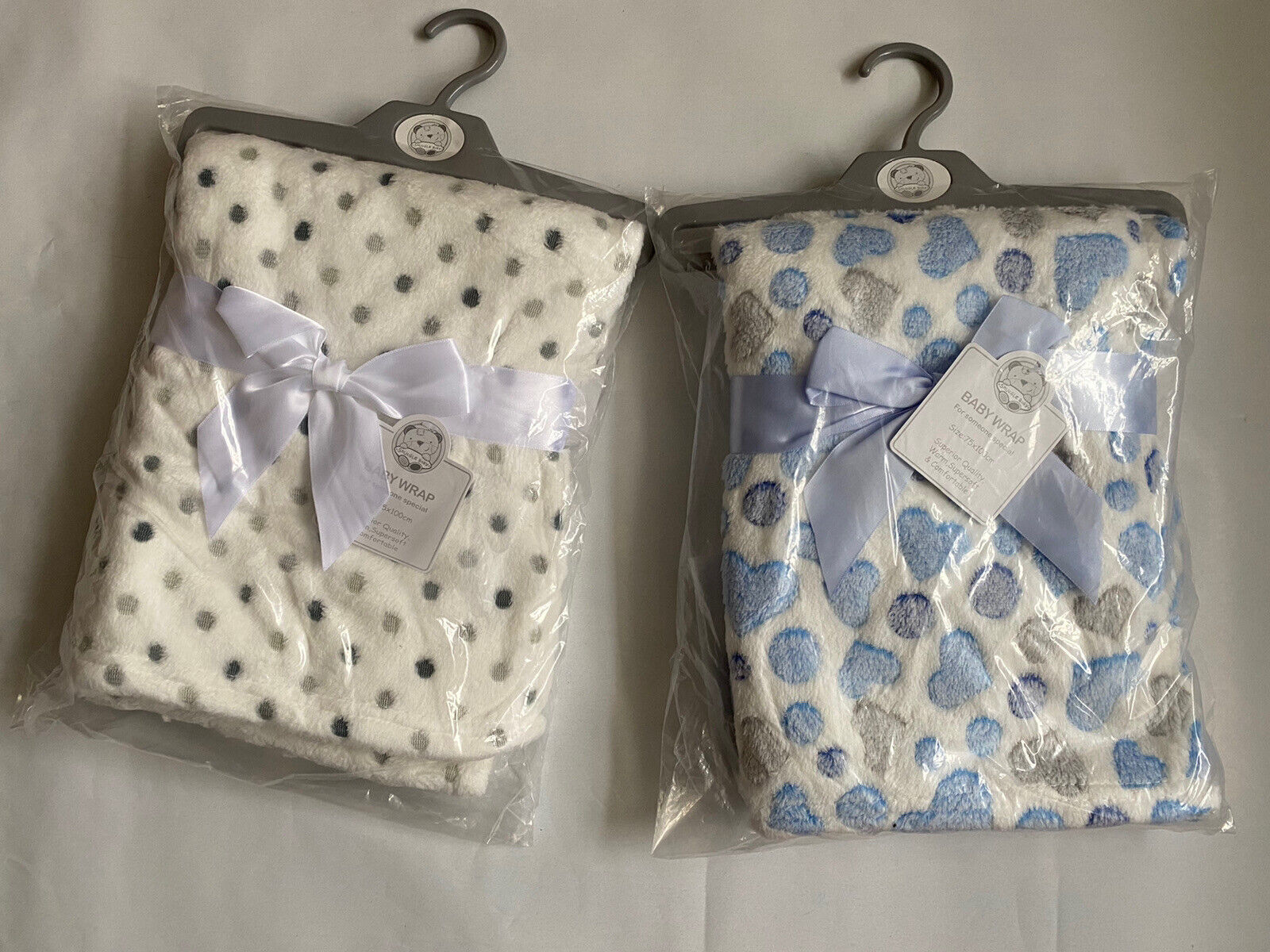 Set of Baby Boy Girl Soft Fleece Blanket Newborn Pram Crib Blue Heart+Grey Dot