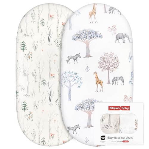GLLQUEN BABY 2 Pack Moses Basket Fitted Sheets, Newborn Pram Sheets Fitted, 100% Microfiber Oeko-tex104 Cozy and Breathable Crib Baby Bassinet Sheets for Boy and Girl(Animal Home)