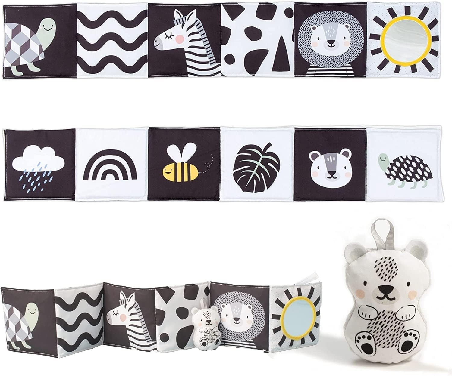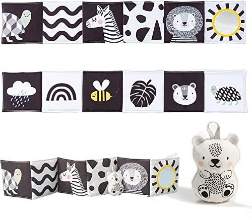 Inbeby Black and White Sensory Toys Tummy Time Baby Cloth Book with 4 Tummy Time Mirror Toys,3D Brain Development Baby Toys 0-6 Months Foldable Standable,Sensory Toys for Babies Newborn Pram Hanging