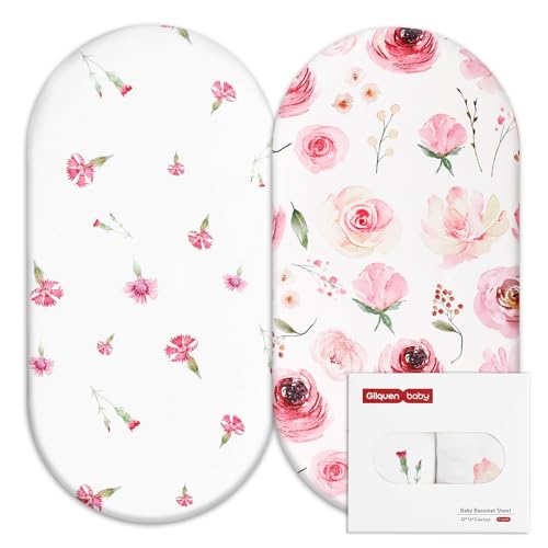 GLLQUEN BABY 2 Pack Moses Basket Fitted Sheets, Newborn Pram Sheets Fitted, 100