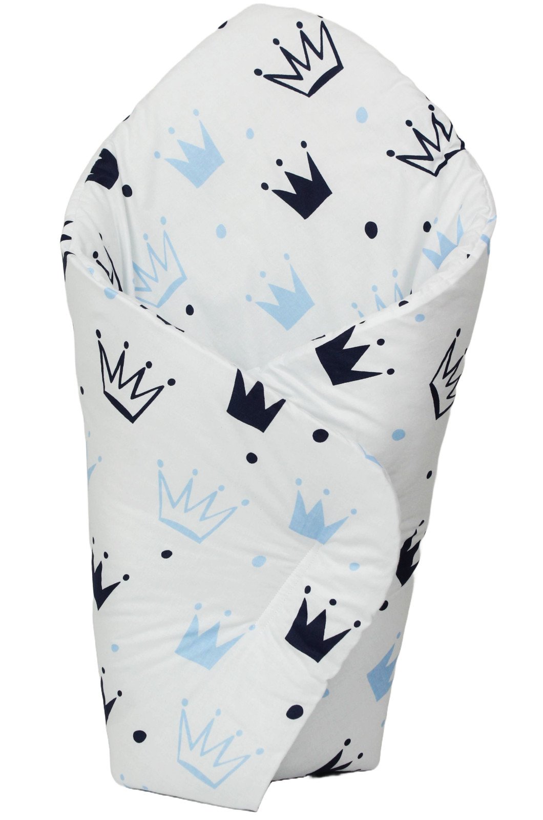 BABY SWADDLE WRAP SNUGGLE NEWBORN BLANKET PRAM QUILT SLEEPING BAG blue crowns