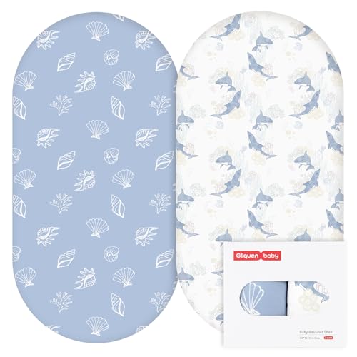 GLLQUEN BABY 2 Pack Moses Basket Fitted Sheets, Newborn Pram Sheets Fitted, 100% Microfiber Oeko-tex102 Cozy and Breathable Crib Baby Bassinet Sheets for Boy and Girl(Sea)