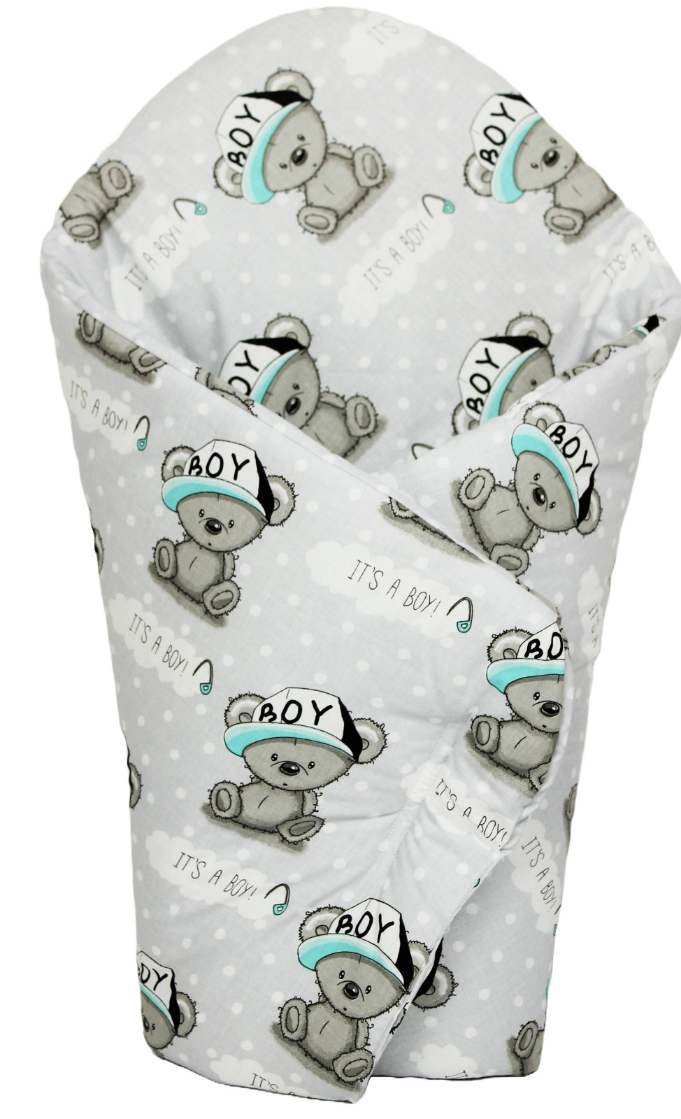 BABY SWADDLE WRAP SNUGGLE NEWBORN BLANKET PRAM QUILT SLEEPING BAG teddy boy grey