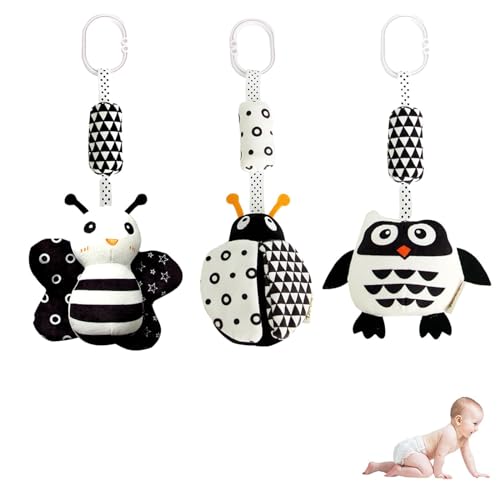 Mystiqut 3PCS Baby Hanging Toys 6 To 12 Months Newborn Pram for Babies High Contrast Black and White Sensory Gym Toys(Ladybug,Bee & Owl),(MXCRTYTS)