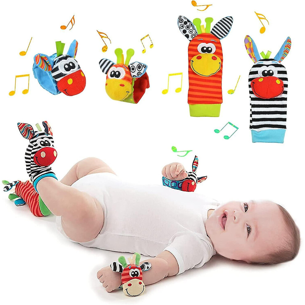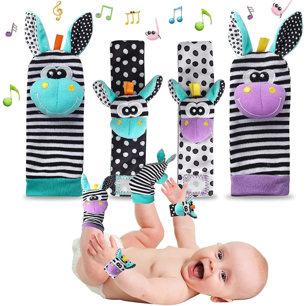(Style A) 4pcs Baby Rattle Toys, Baby Foot Finder Sock Wrist For Infants Sensory Development, Bebe Wristband Rattle Strap Newborn Sensory Toys Baby Sh