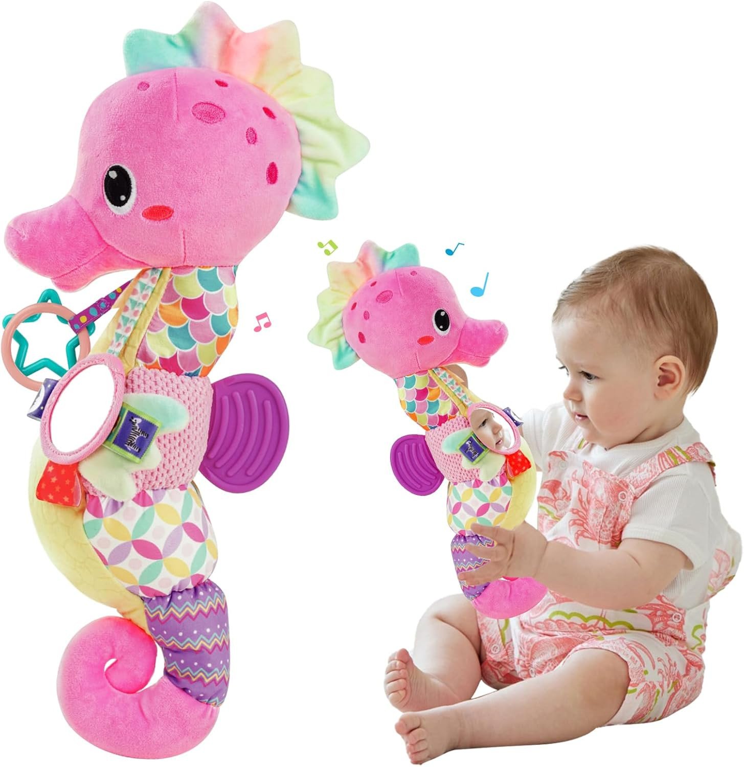 Baby Toys 0-3 0-6 Months, New Baby Girls Boys Gifts Newborn Sensory Toys 0 3 6 6-12 months, Essentials Newborn Baby Musical Soft Tummy Time Toys with Mirror Rattles Teether for Babies Girls Boys