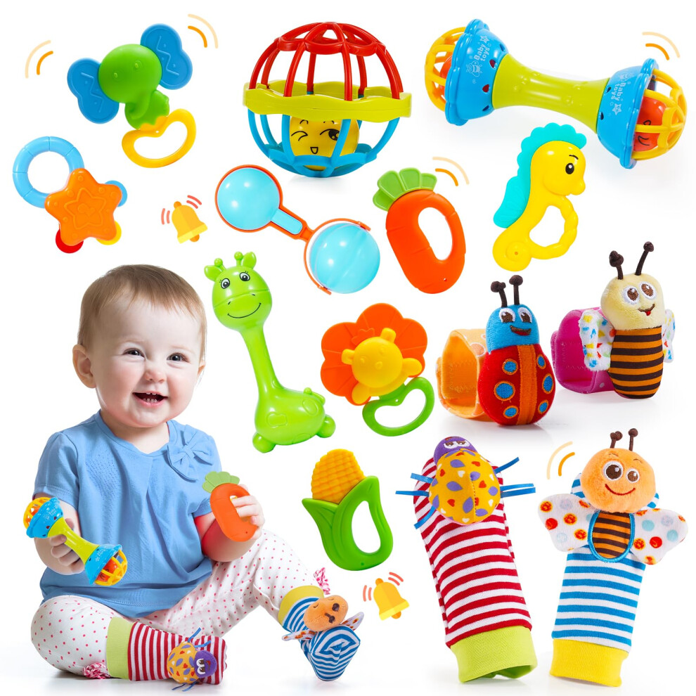 Baby Toys 6 Months Plus, Newborn Sensory Toys Teething Toys for Baby, Montessori Toys for Babies 6-12 Months, Sound Musical Toys for 1 Year Old, Baby