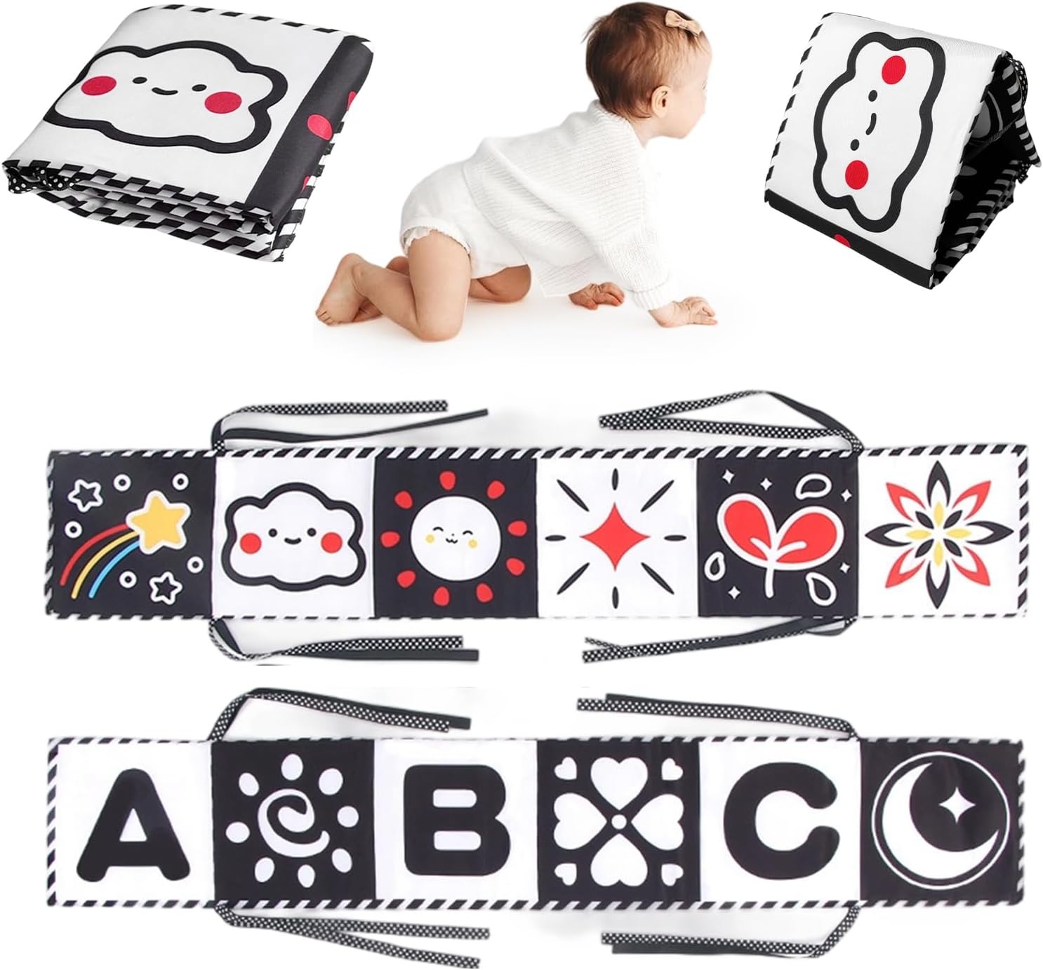 Black and White Baby Toys 0 3 6 Months, High Contrast Baby Toys 0-3 0-6 Months, Baby Soft Cloth Book Newborn Sensory Toys 0-6 Months Tummy Time