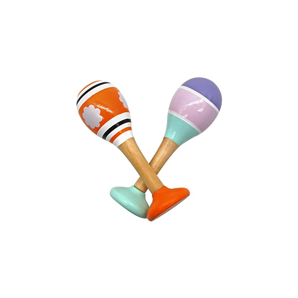 PREMYO Baby Rattle Maracas - Wooden Musical Instruments for Toddlers - Newborn Sensory Toys - Orange Turquoise