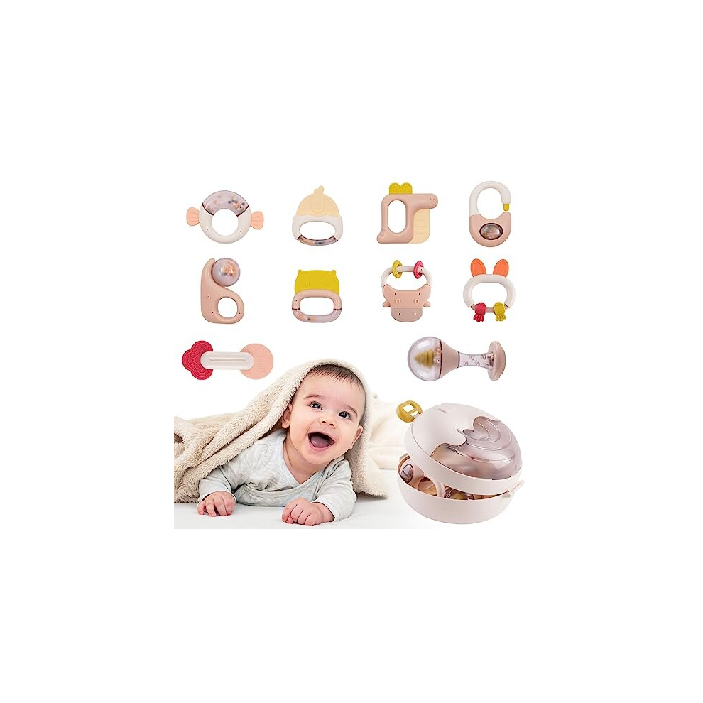 Baby Rattles Toy 10PCS Rattle Teether Set Infant Newborn Baby Sensory Toys Musical Toy with Storage Box Early Educational Toys Gifts for 3 6 9 12