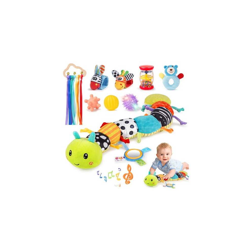 Joyreal Baby Toys 0-6 Months, 10pcs Newborn Sensory Toys Set, Baby Musical Caterpillar Toys, Rattles, Ribbons, Baby Essentials Baby Sensory Box,
