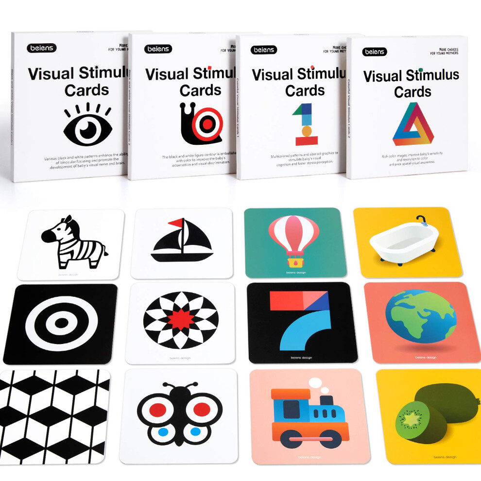 beiens Newborn Essentials Sensory Toys Cards, 160 Page Black White Visual Stimulation Learning Activity Cards for Babies Ages 0-3-6-12-36 Months,