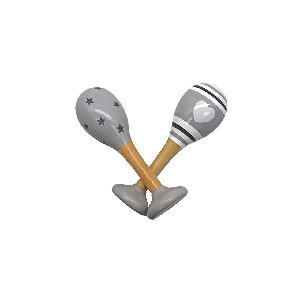 Baby Rattle Maracas - Wooden Musical Instruments for Toddlers - Newborn Sensory Toys - Grey