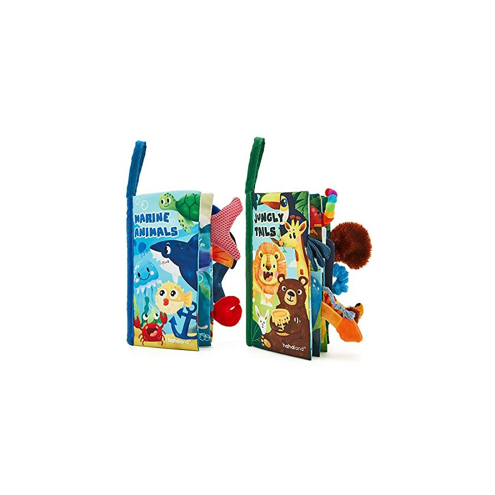 hahaland 2 Pcs Baby Books Toys 0-6 Months Touch Feel Activity Soft Book with Squeaker, Crinkle Paper Newborn Baby Sensory Toys 0 3 6 12 Months 1 Year