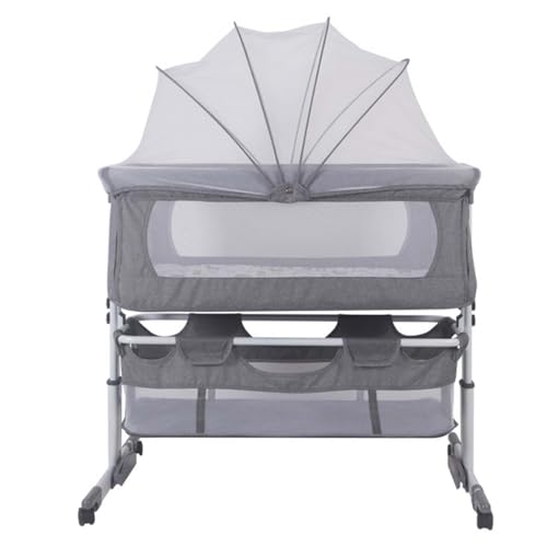 Veitoalioy 3 in 1 Baby bed beside with me, Multifunctional Adjustable Electric infant Newborn cradle with shake and music, Convertible feeding Toddler highchair, Baby swing with wheels (Grey)