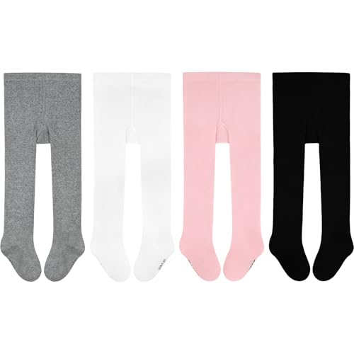 GENTABY Girls Pantyhose Toddler Baby Tights - 4 Pairs Cotton Black White Pink Gray 18-24 Months Infant Girls Tights Newborn Kids Pantyhose