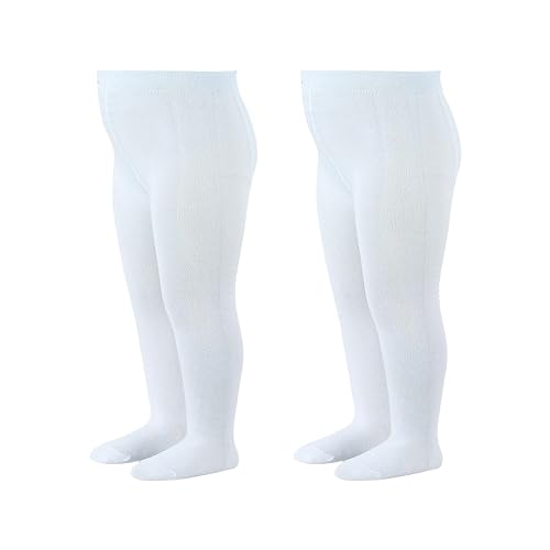 bistyle Baby Girls Tights Thick Leggings Soft | Warm Organic Cotton Stockings Pantyhose | Newborn Infant Toddler 2 Pack (UK, Age, 0 Months, 6 Months, White/White)