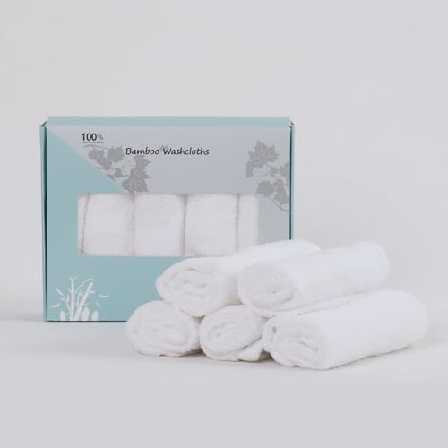 Baby Washcloths 100% Organic Bamboo Bath Washcloth Reusable Face Towels Anti-Bacterial Soft Towel Set Perfect for Newborn White(5 Pack)