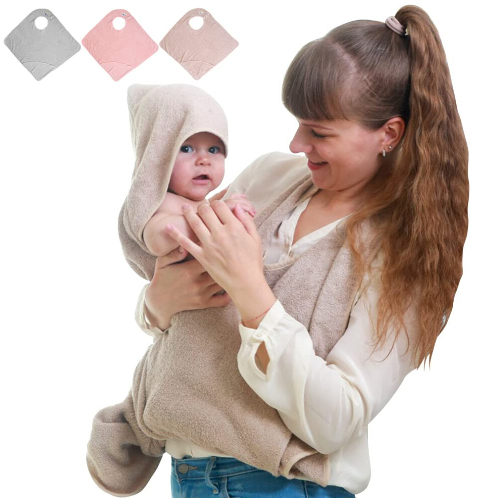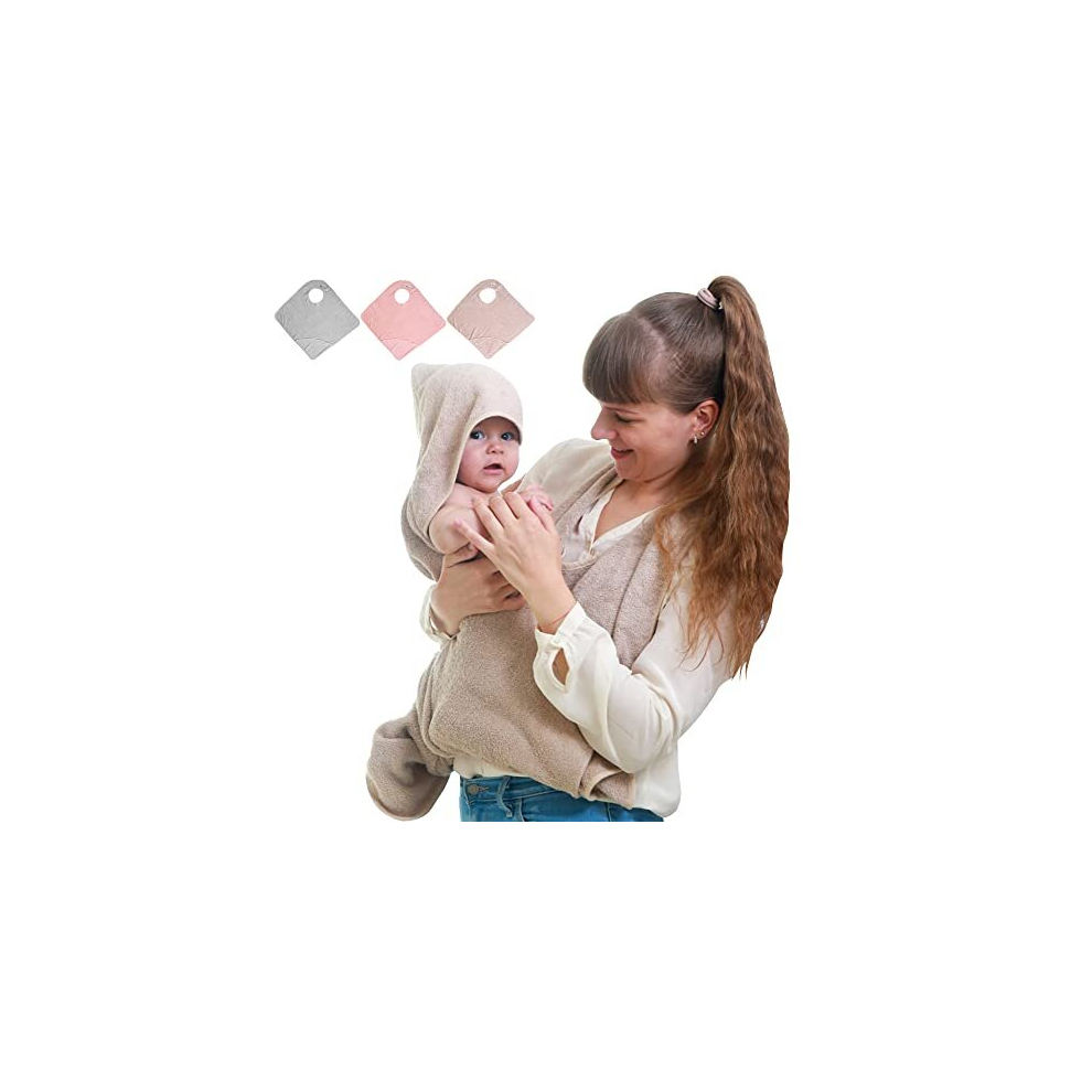 Hooded Baby Towel,Hands Free Baby Bath Towel,Cotton Soft & Absorbent Baby Towels Newborn,Apron Towel,Personalised Gifts Baby for Boy and Girl (Khaki)