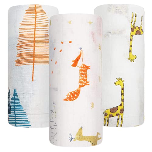 Toddler Blanket, Cotton Swaddle Blankets Unisex Soft Cotton Baby Blanket Baby Bath Towel Swaddle Newborn Nursery Swaddle Wrap for Baby Girls Boys (Happy Fox)