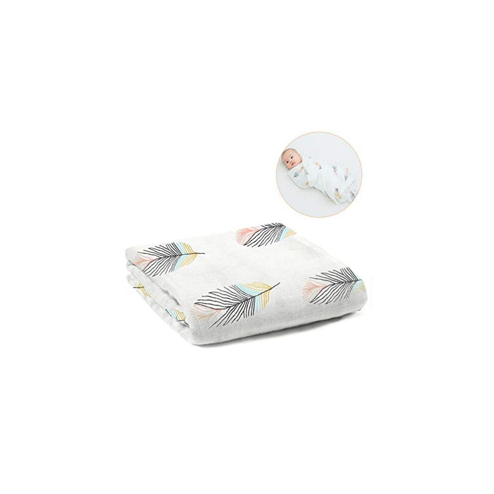 Baby Muslin Washcloths 120cmX120cm Organic Cotton Cartoon Newborn Towel Muslin Squares Babies Soft Washcloth Swaddle Blanket Shower WipeColour Feather
