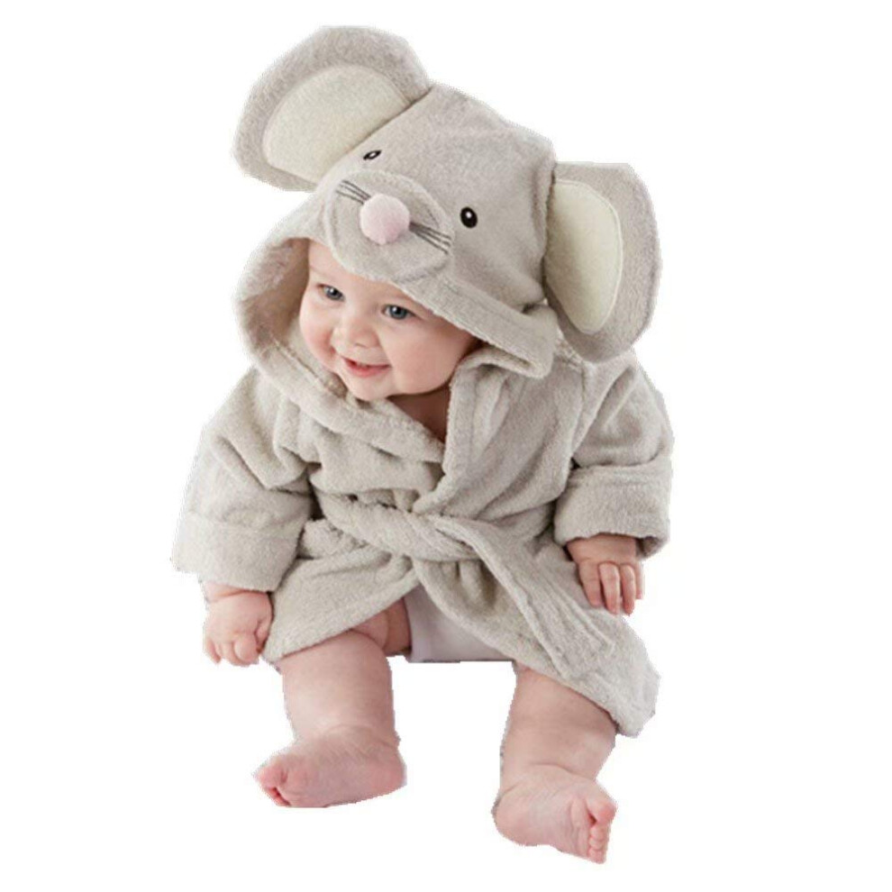 Baby Boy Bathrobe Hooded Girl Bath Towels Wash Waddle Mouse Bath Robe Preterm Newborn Towel Terry 0-18 Month (Grey S)