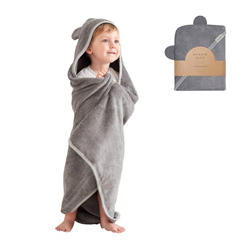 Munich Blue Baby Towel for Boys and Girls - Cozy Baby Bath Towel for Newborn, Infant and Toddler - 600GSM Premium Super Soft Hooded Baby Towel with Cute Bear Ears (Cloudy Color, 35 x 35 inch)