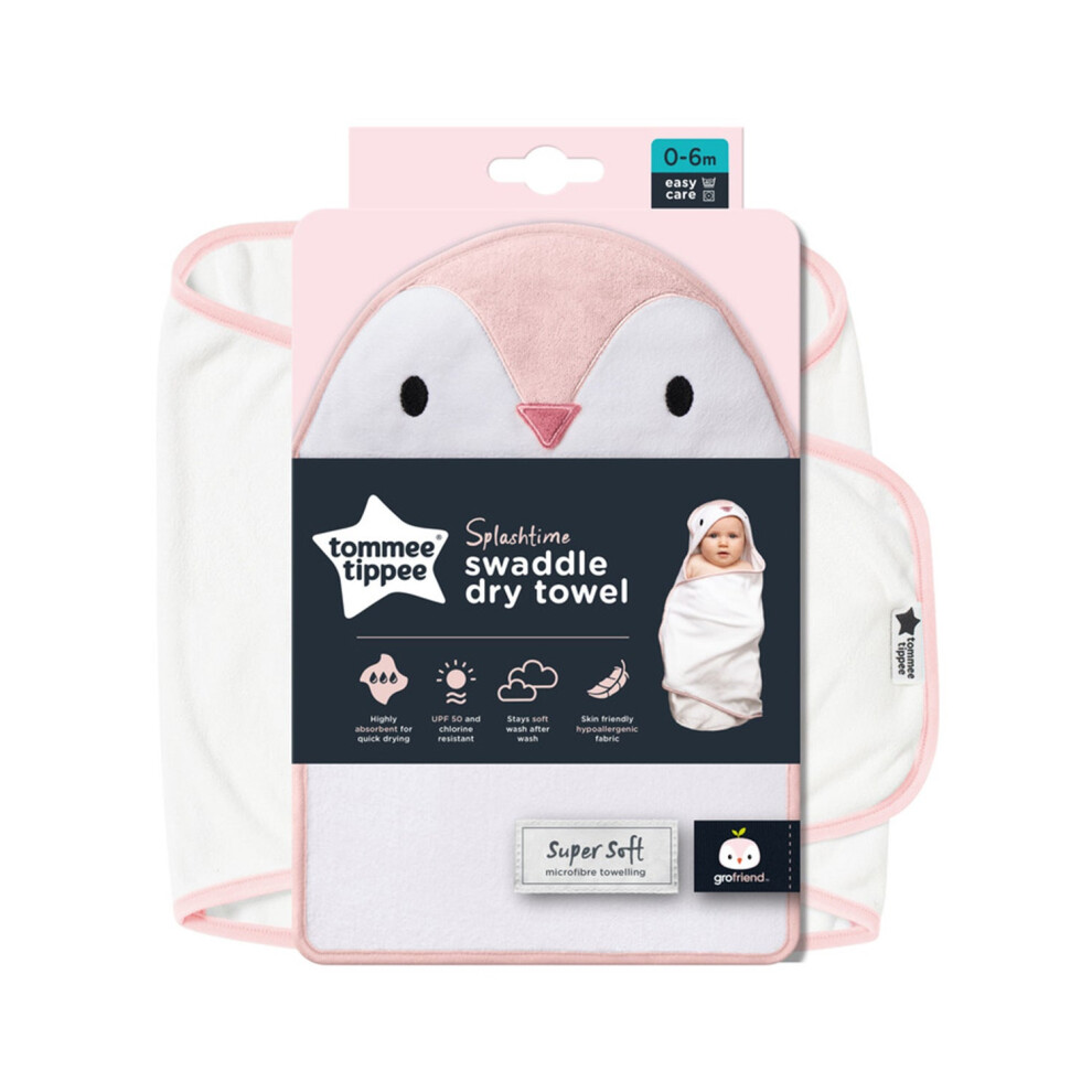Tommee Tippee Splashtime Newborn Swaddle Dry Towel 0-6m Percy the Penguin