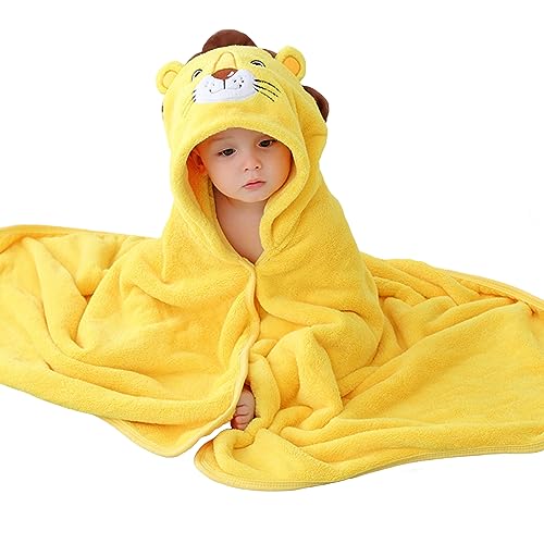 Asnewkit Hooded Baby Towel - Soft Absorbent Bath Towels with Hood, Unique Animal Design, for Newborn Baby Boy & Girl (L-Yellow Lion)