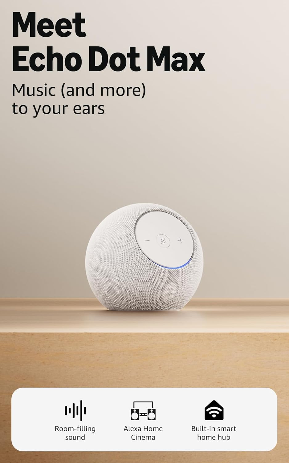 Echo Dot Max (Newest Gen), Alexa Speaker with Room-Filling Sound and Built-In Sm