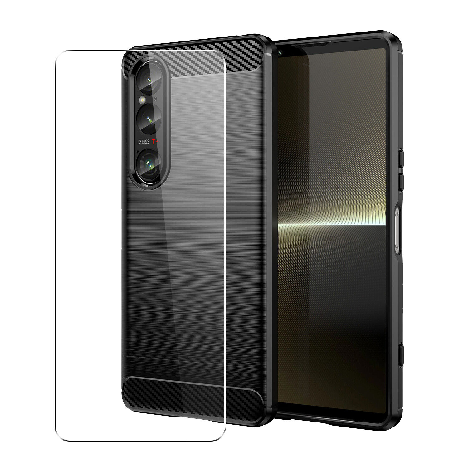 Carbon Case for Sony Xperia 1 VI Phone Cover and Glass Screen Protector Black