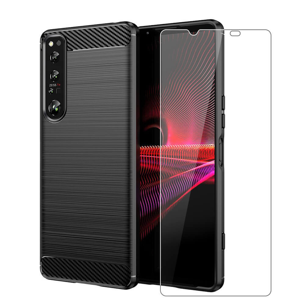 Carbon Case for Sony Xperia 1 IV Phone Cover and Glass Screen Protector