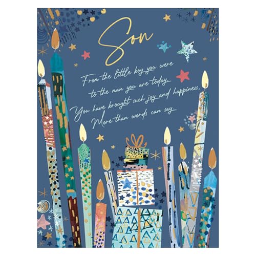 Words N Wishes Son Birthday Card - Candles and Presents with an Embossed Foil Finish - Eco-Friendly and Recyclable