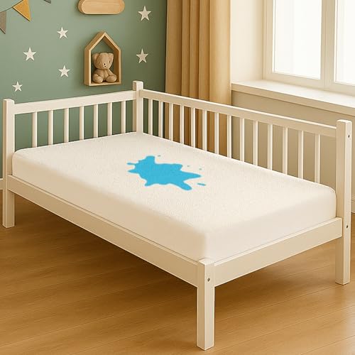 Acrali Home 100% Waterproof Crib Mattress Protector, Super Absorbent Premium Terry Towel Cotton, Anti-Allergy, Nonslip Washable Mattress Protectors Covers, Suitable for Next2Me Mattress - 50x85cm