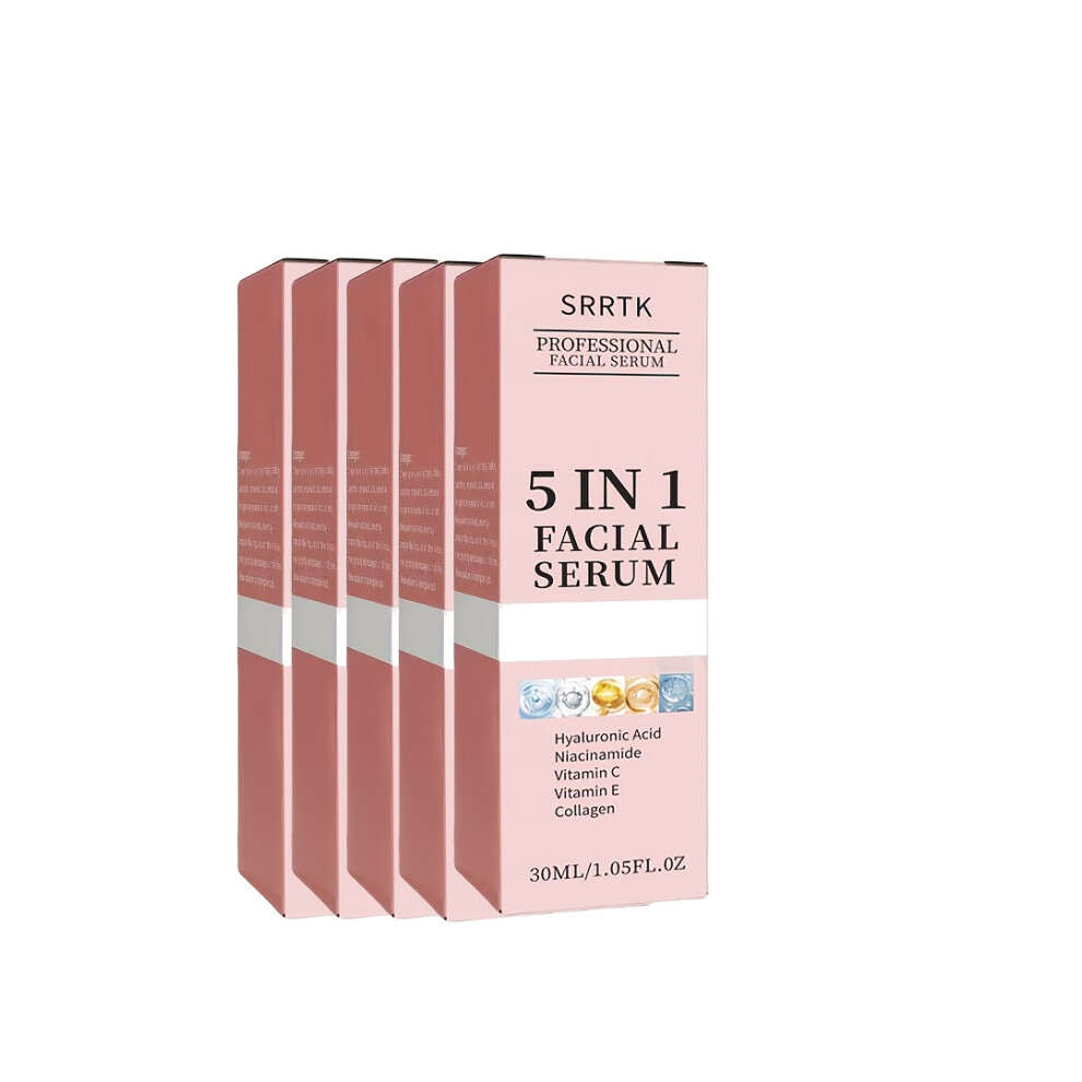 (30ml*5) 5pcs 5-in-1 Facial Serum Set with Hyaluronic Acid, Collagen, Niacinamide, Vitamin C & E -Pore Minimizing Hydration Formula, All Light Beige
