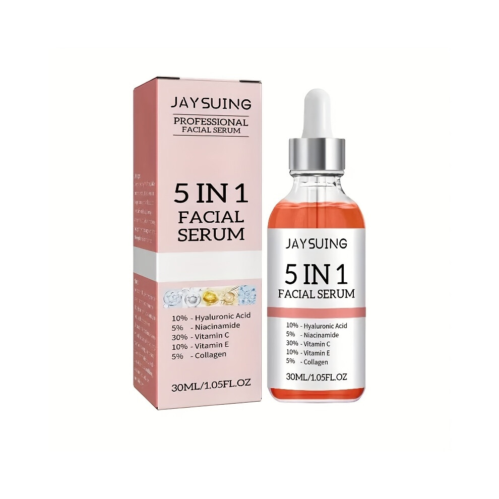 (30ml) 5-in-1 Facial Serum with Hyaluronic Acid, Collagen, Niacinamide, Vitamin C & E - Pore Minimizing Hydration Formula, All Light Beige Types